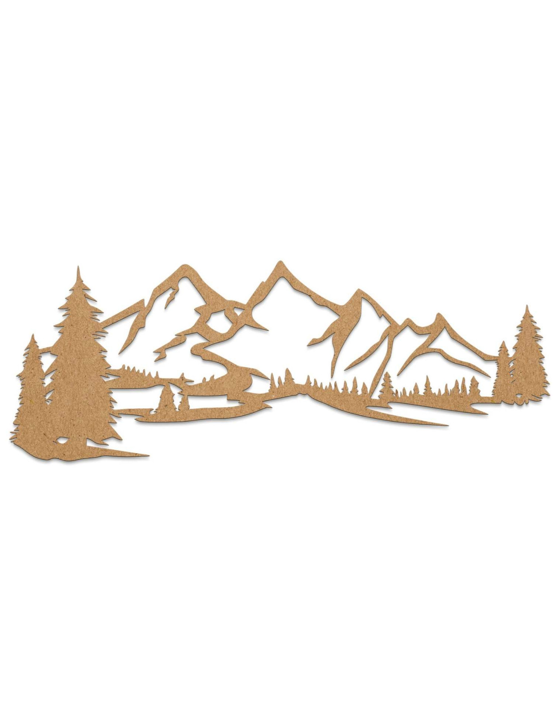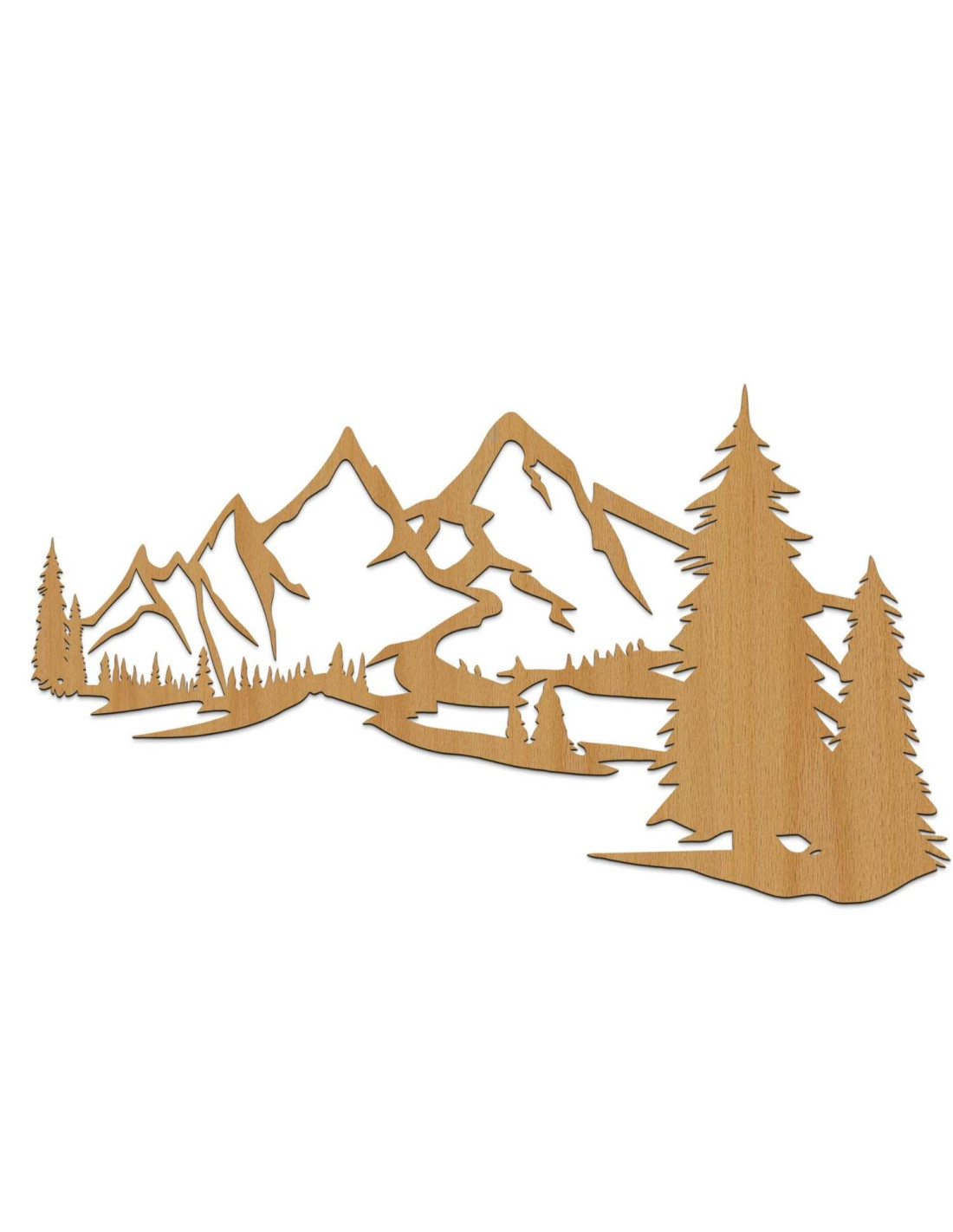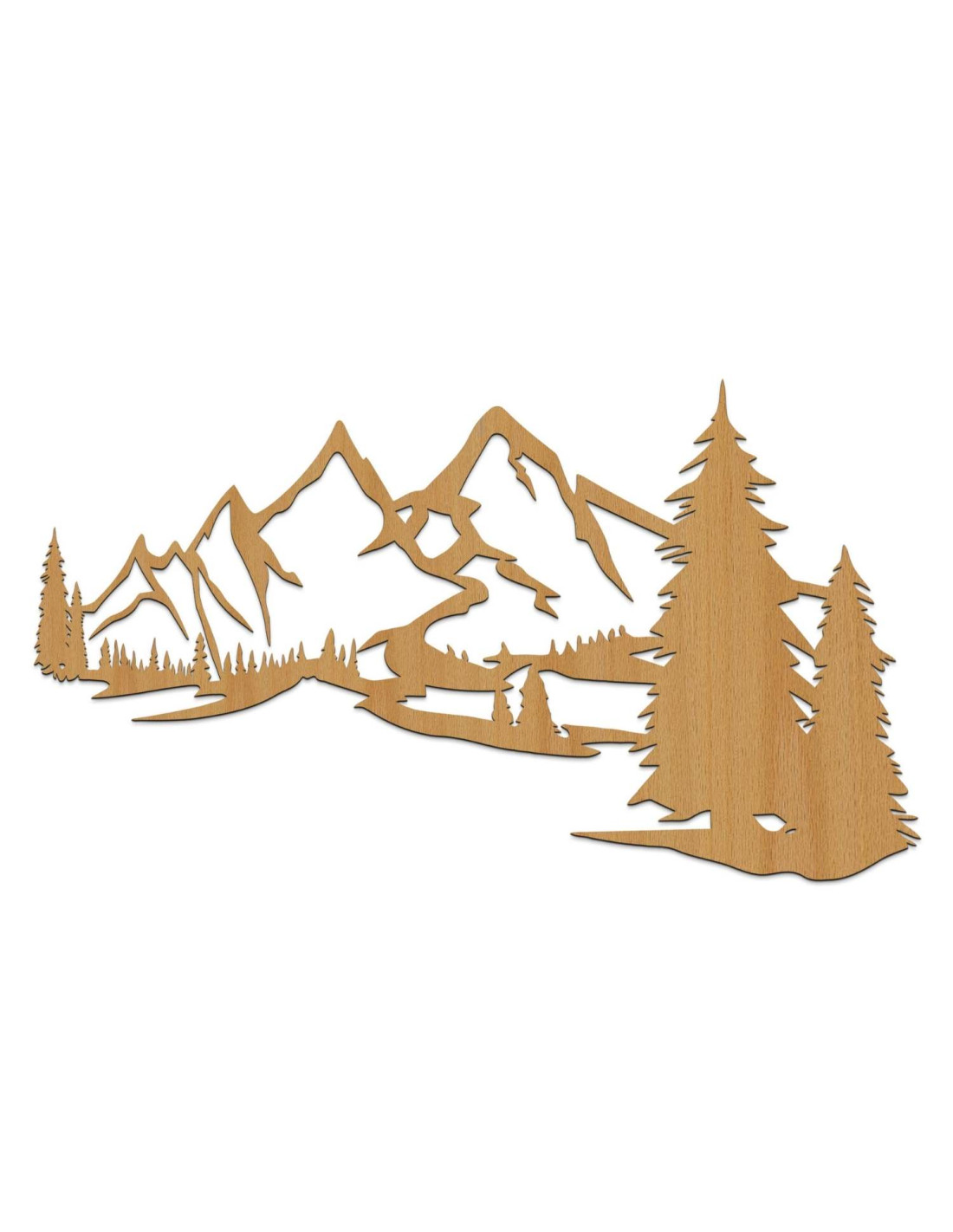 The scenery of majestic mountains and coniferous trees is carved with precise laser cutting, ensuring fine details, clean lines and professional quality workmanship.