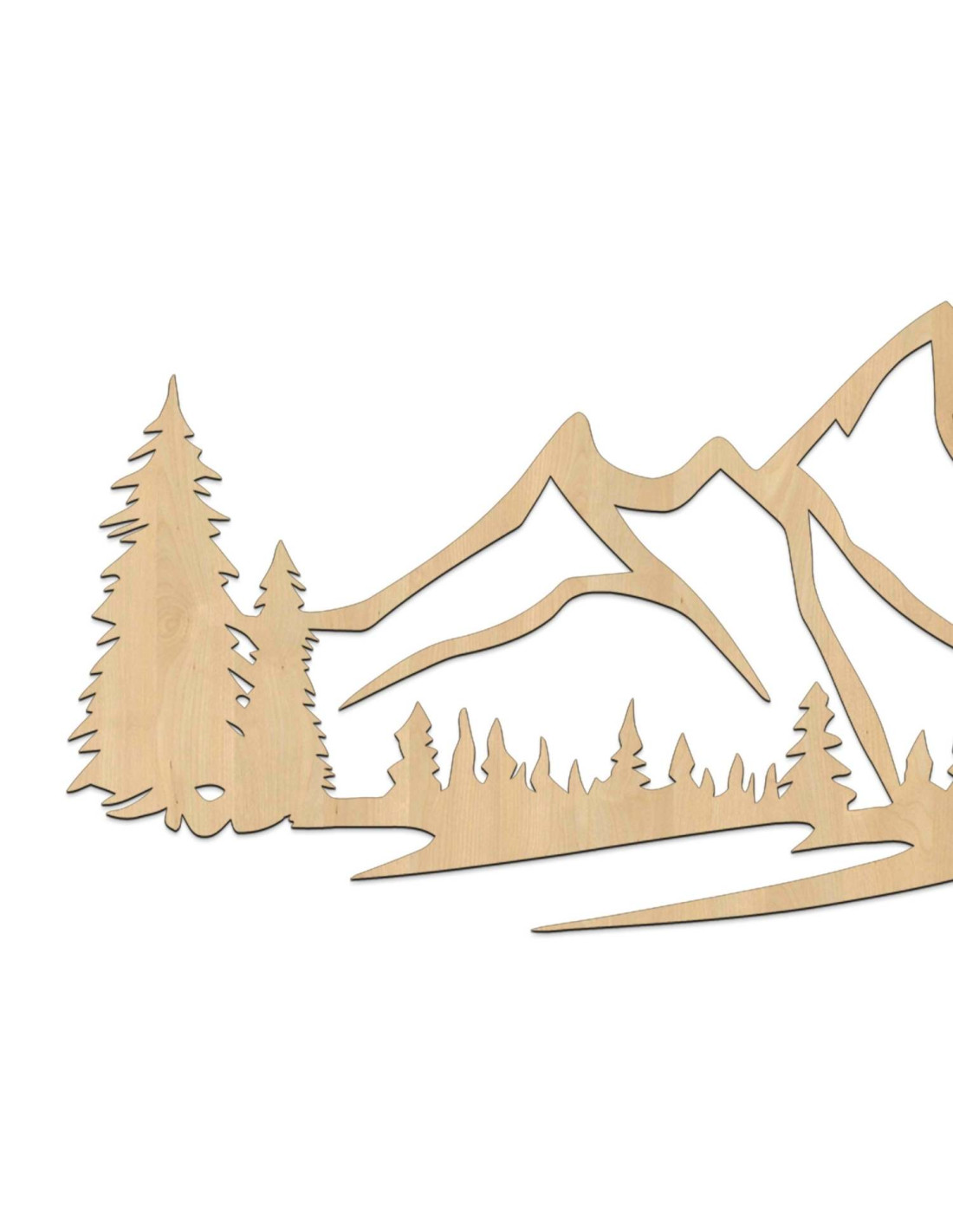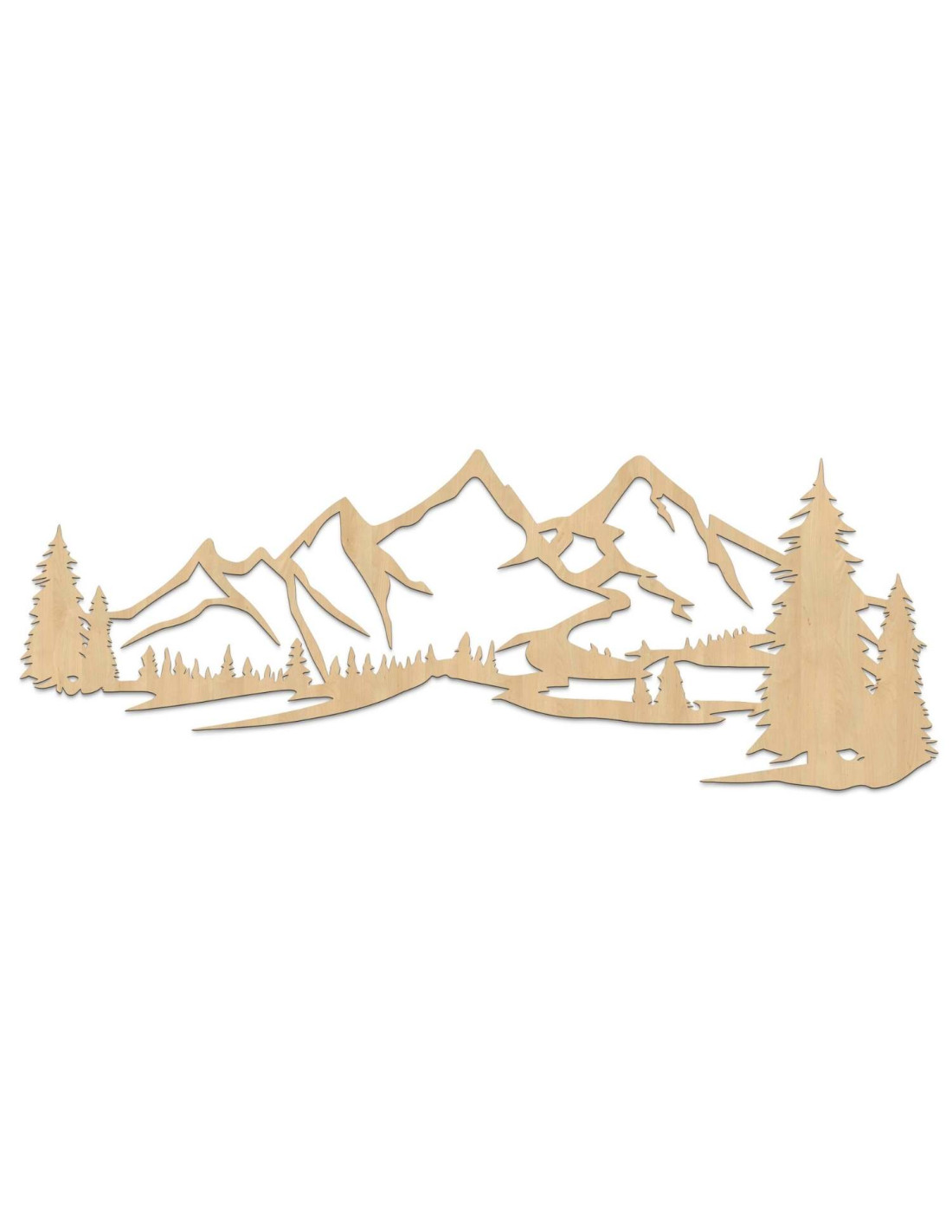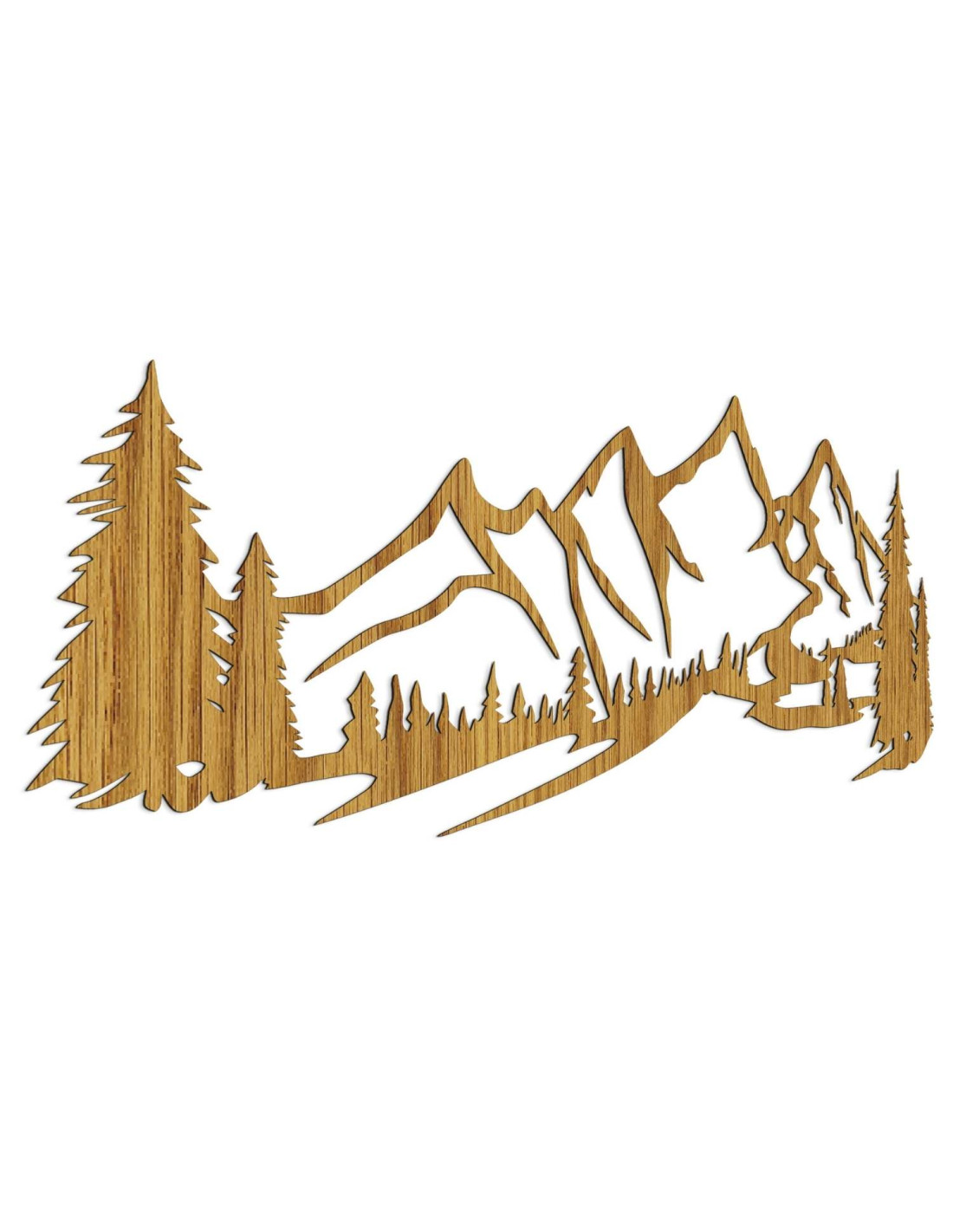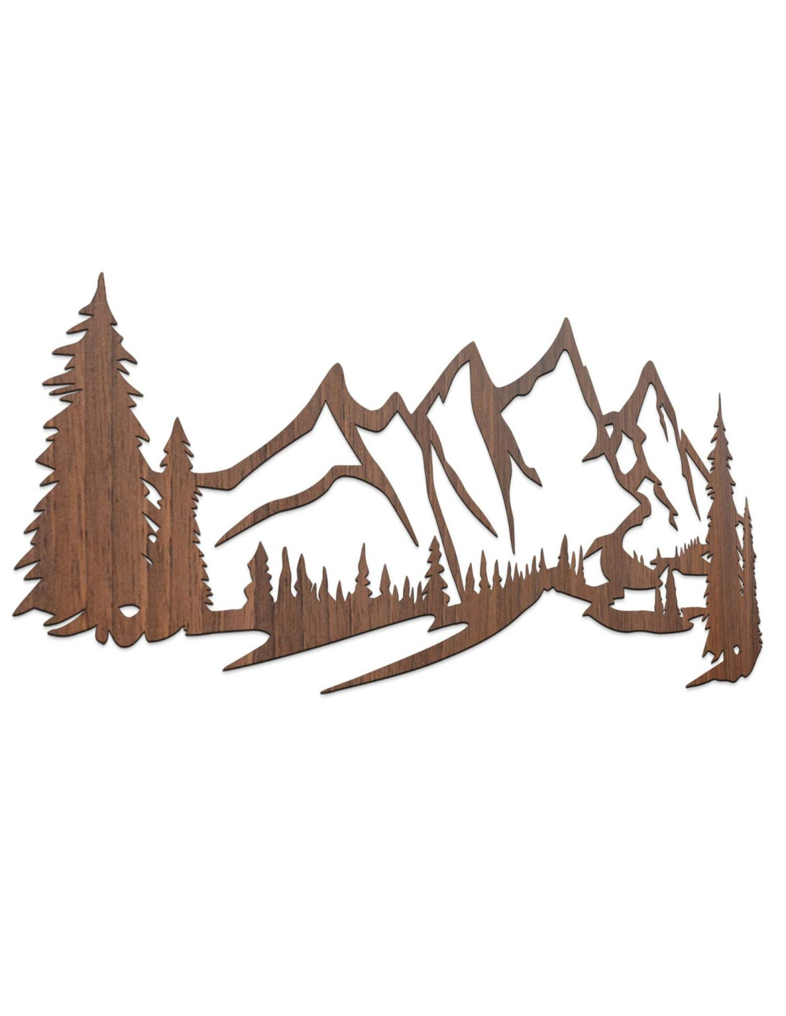 The scenery of majestic mountains and coniferous trees is carved with precise laser cutting, ensuring fine details, clean lines and professional quality workmanship.
