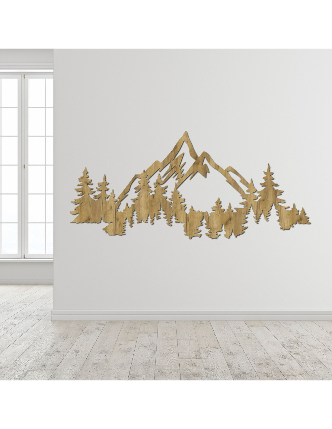 Wooden wall painting of a mountain landscape with a forest | SIERRAA
