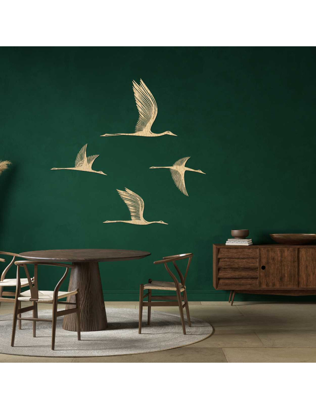 An elegant wooden decoration with a motif of flying birds will bring a sense of freedom and movement to the interior.
