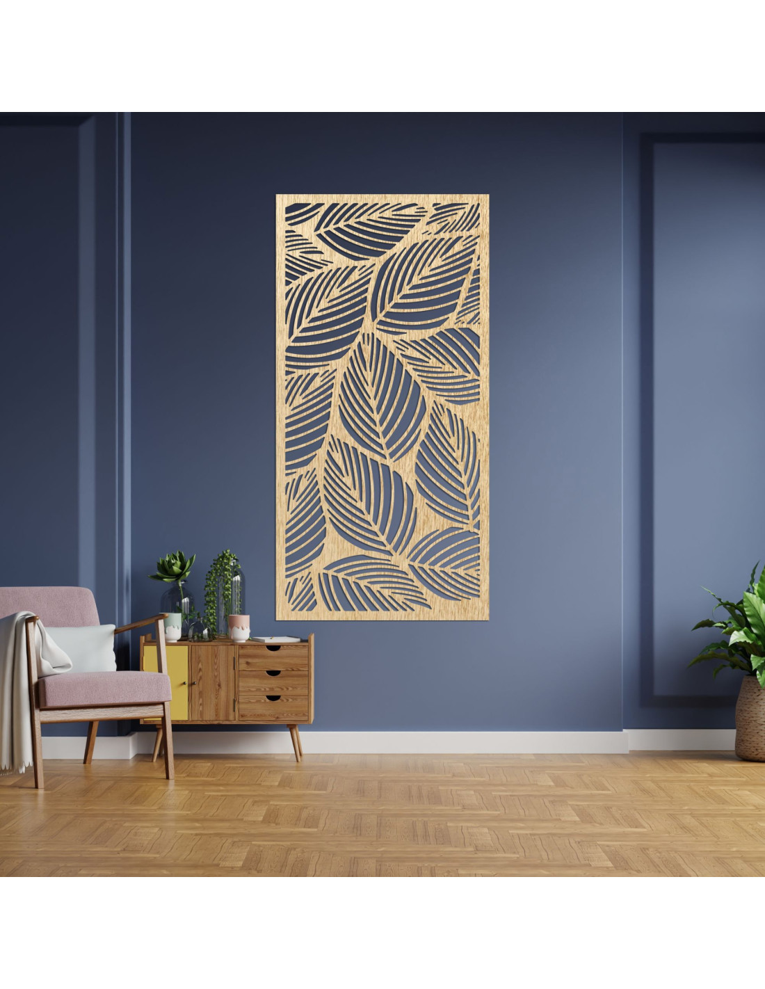 Wooden wall painting leaves | FLORS