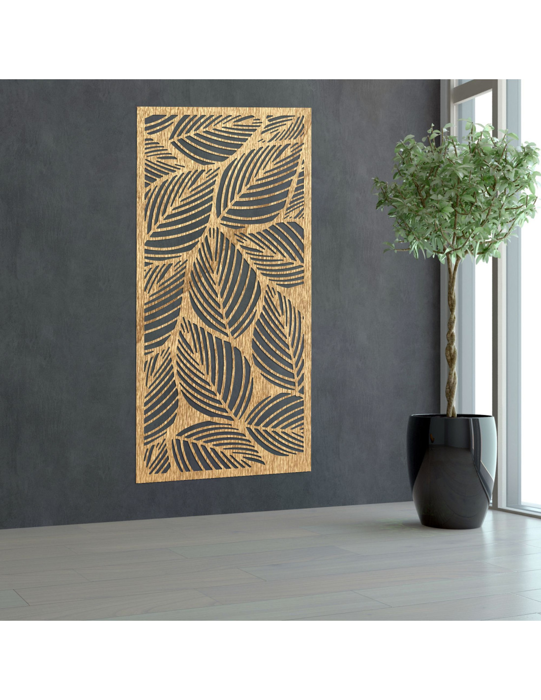 Wooden wall painting leaves | FLORS