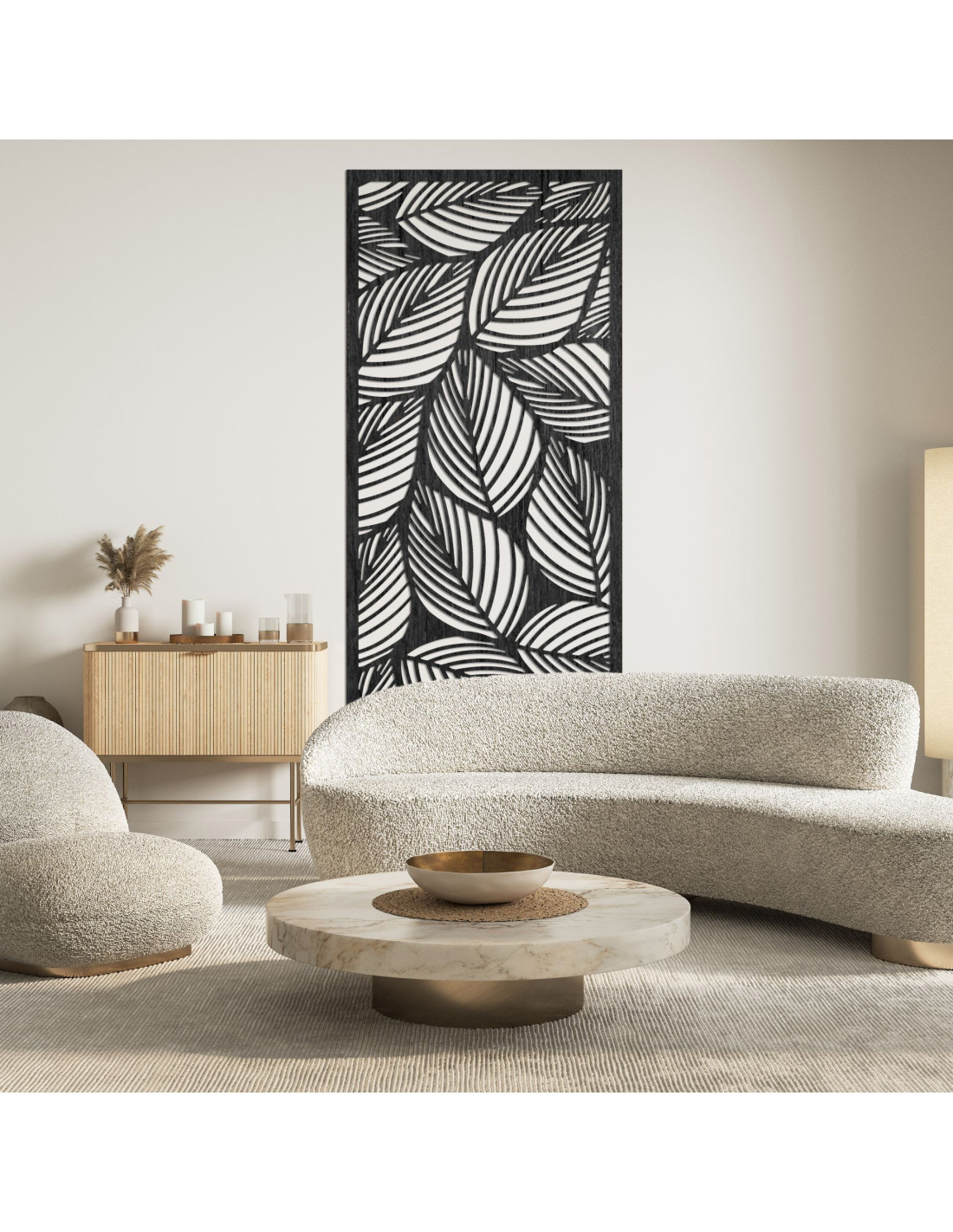 The leaf-themed design brings a touch of nature and lightness to the interior.