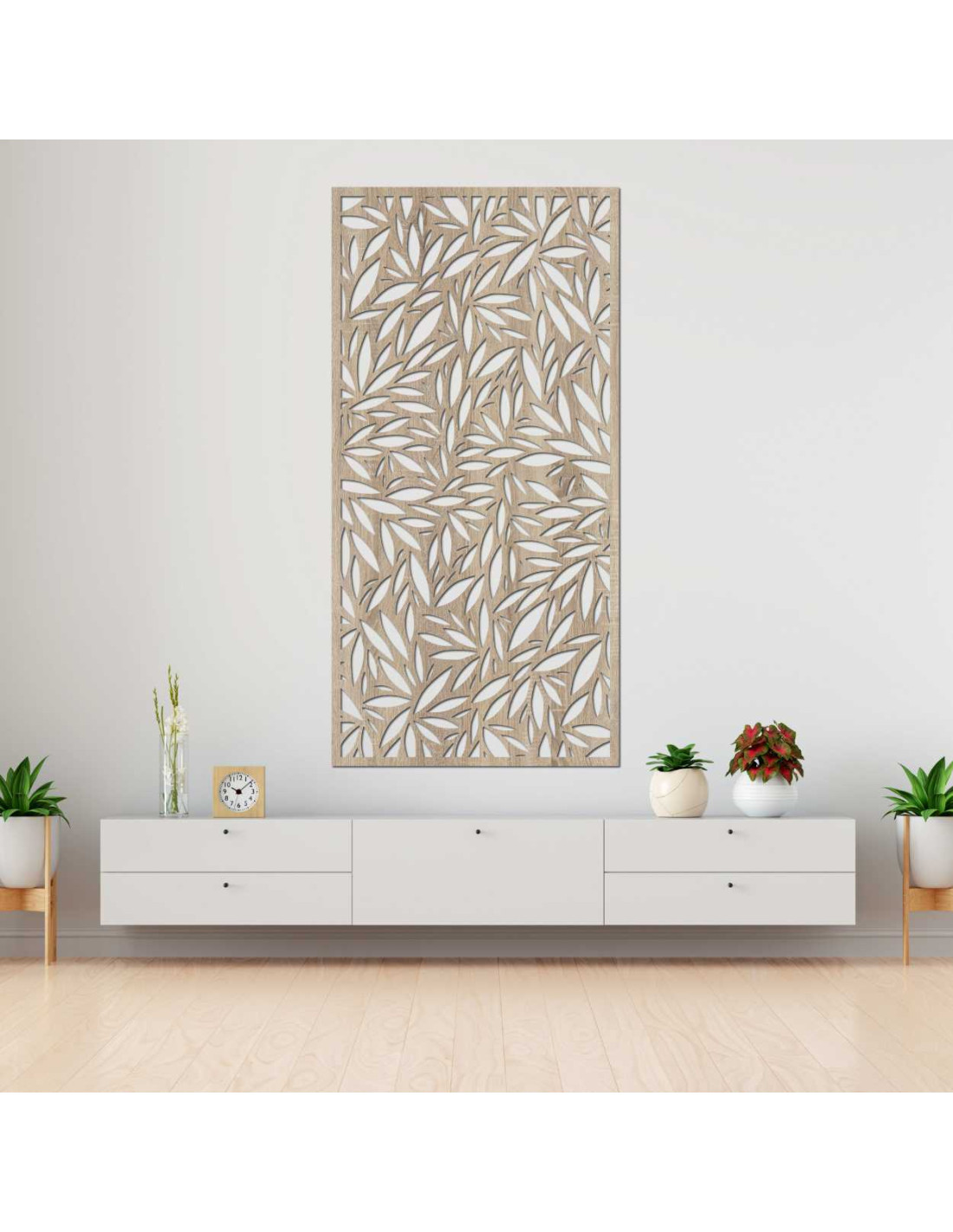 The wooden picture with a plant pattern brings an original design with detailed carved leaves.