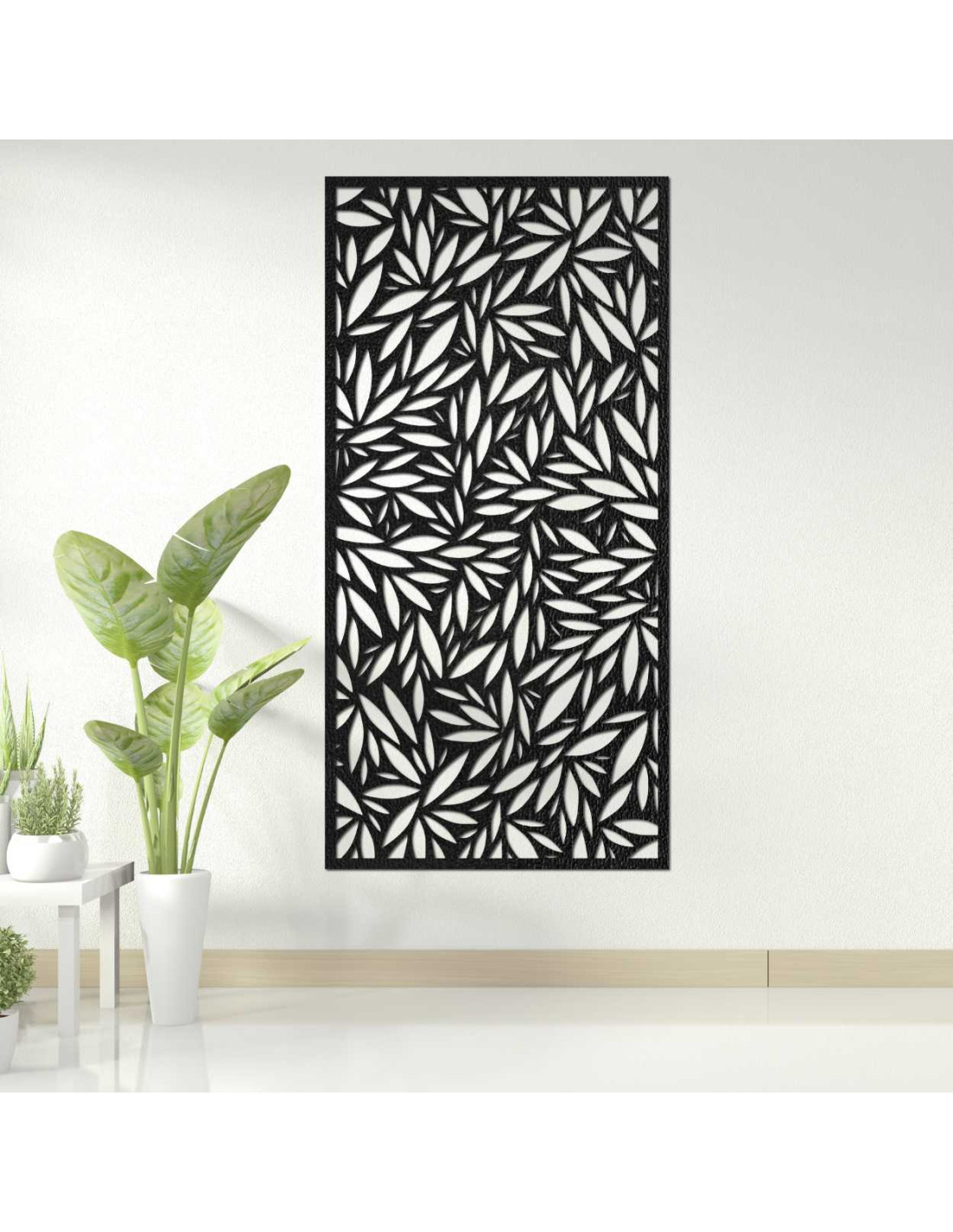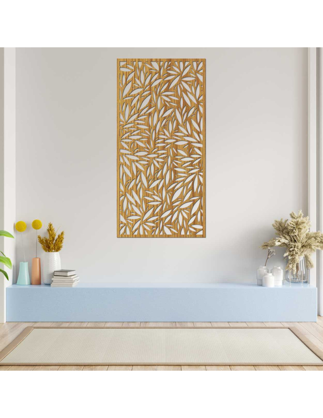 The wooden picture with a plant pattern brings an original design with detailed carved leaves.
