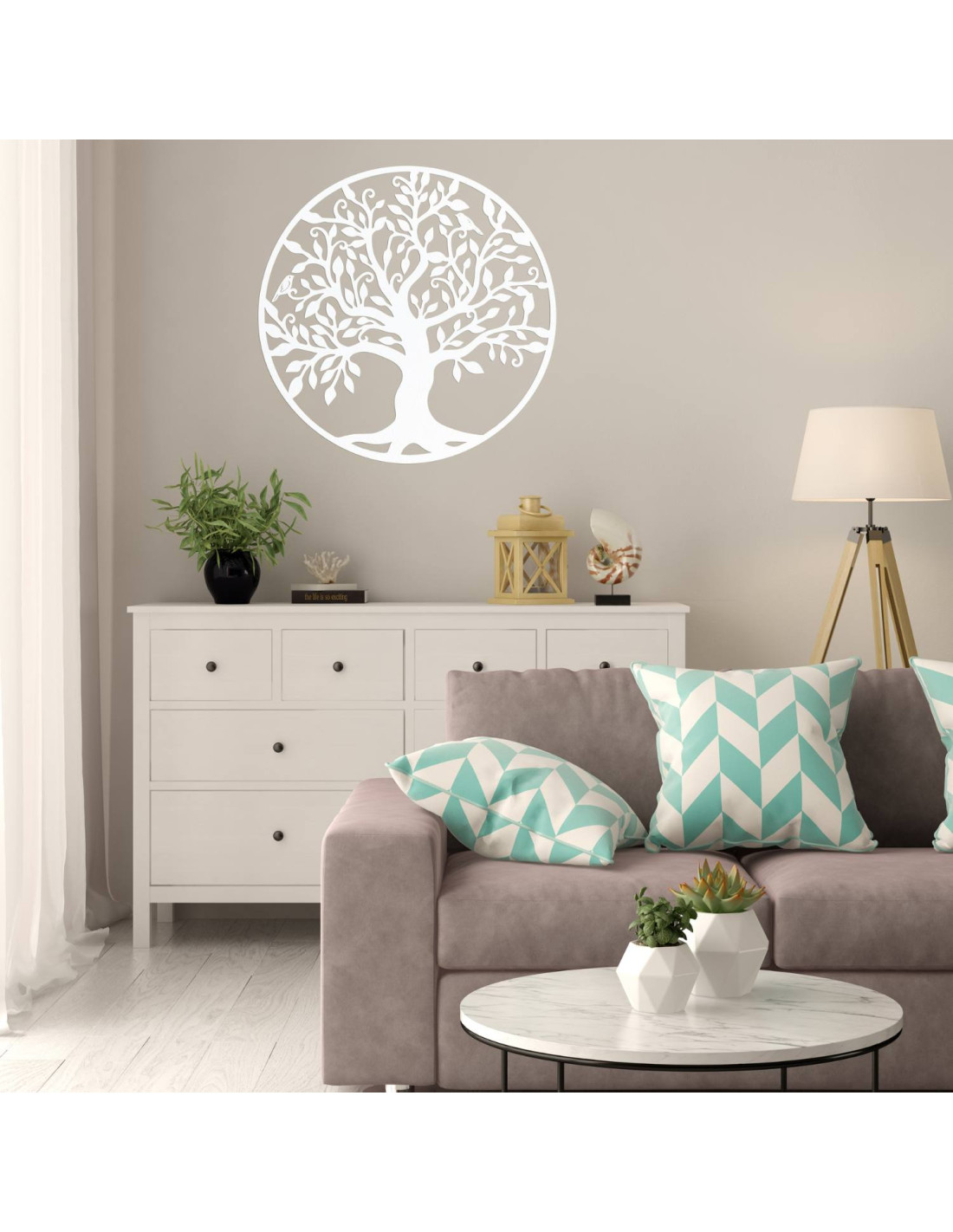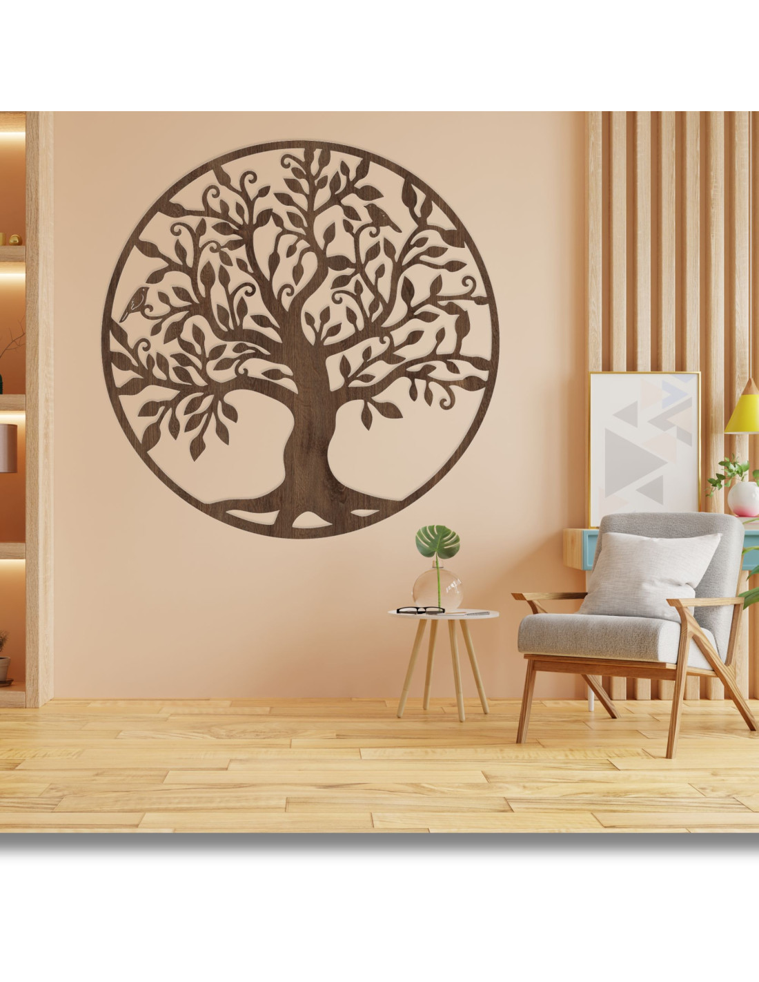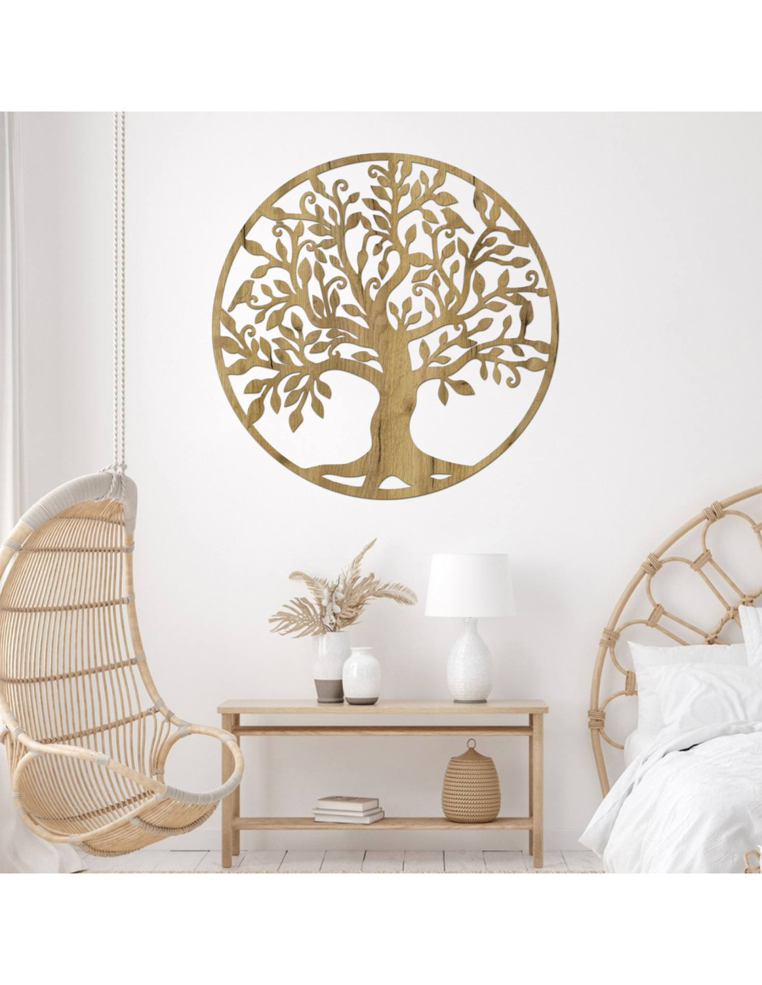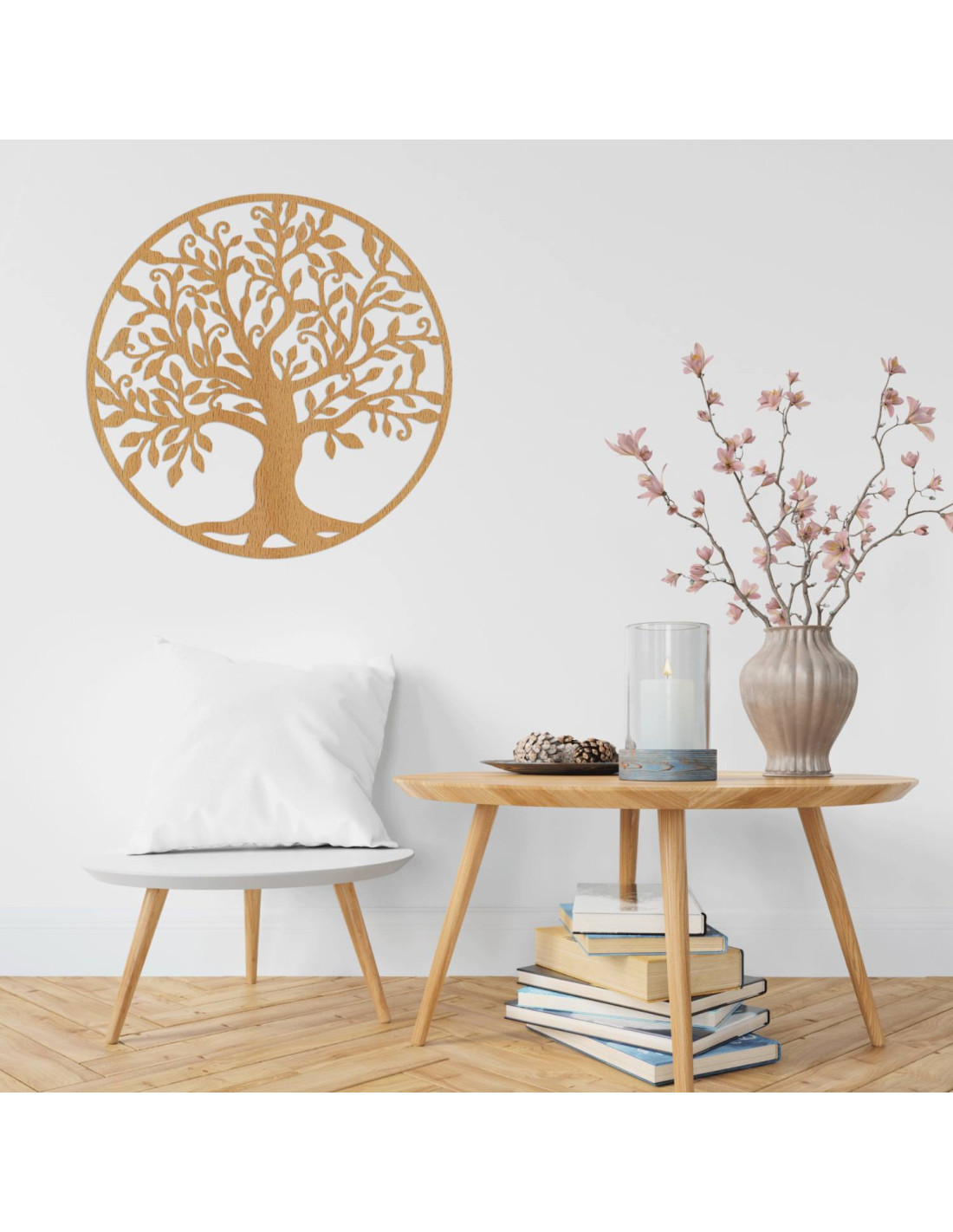 The design of this tree of life is inspired by an ancient sacred symbol that appears in various cultures as a sign of harmony, unity and the cycle of life . This symbol is associated with the energy of the earth, growth and inner peace , which is why it is often used to improve the atmosphere in the interior.
