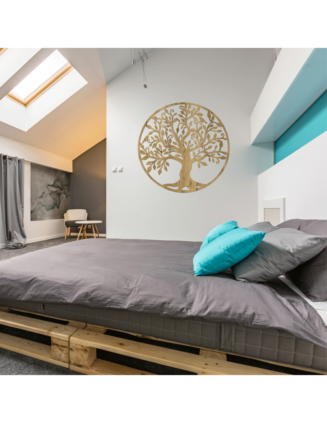 The design of this tree of life is inspired by an ancient sacred symbol that appears in various cultures as a sign of harmony, unity and the cycle of life . This symbol is associated with the energy of the earth, growth and inner peace , which is why it is often used to improve the atmosphere in the interior.