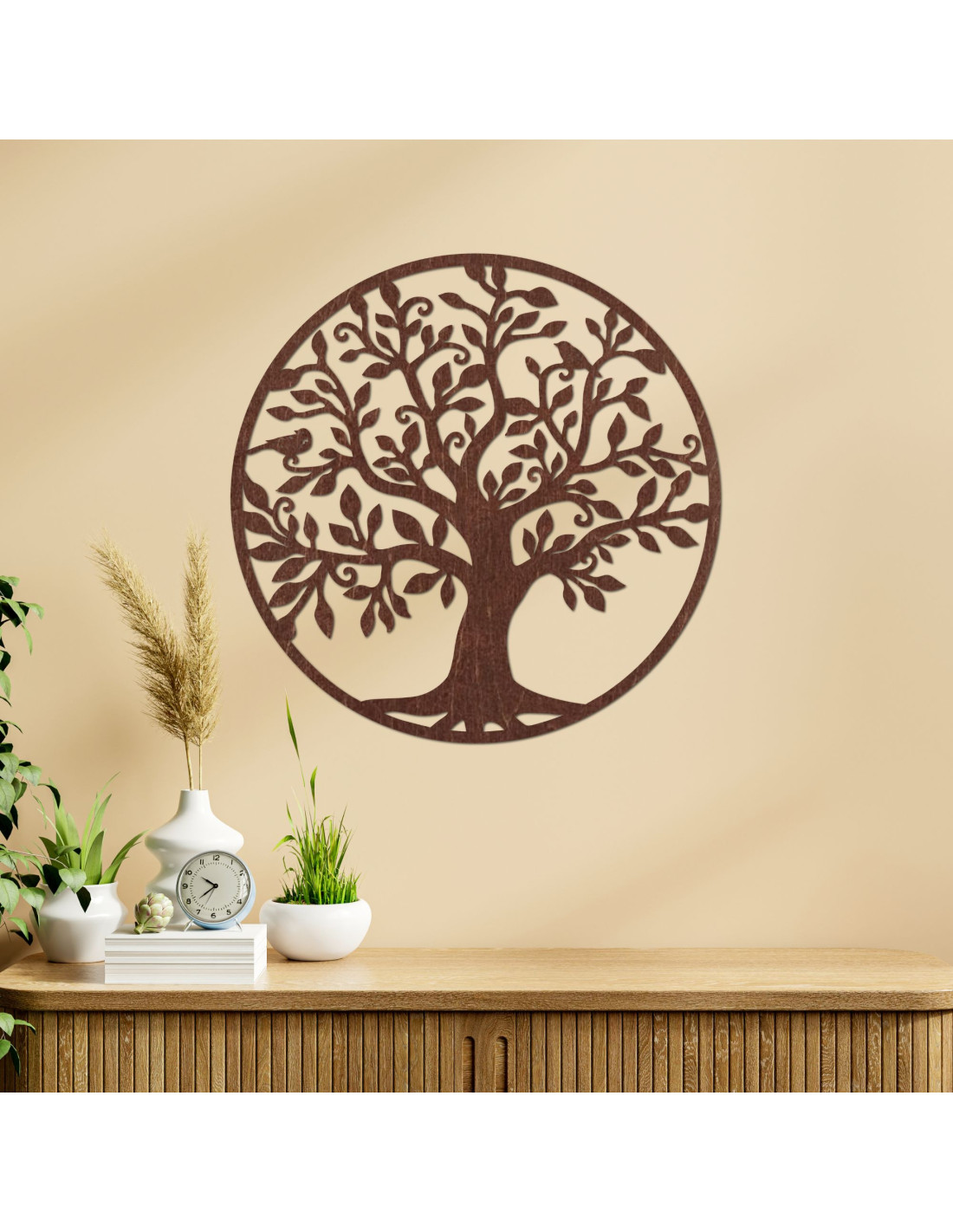 The wooden decoration in the form of a tree of life is a perfect combination of natural design and elegant art . It symbolizes family bonds , growth and harmony , creating a pleasant atmosphere in any room. High-quality workmanship and detailed carving guarantee a unique look. A great choice as a gift or a stylish addition to your interior.