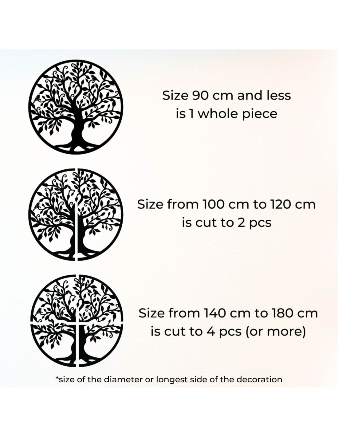 - From 140 cm to 180 cm - the decoration is cut into four parts