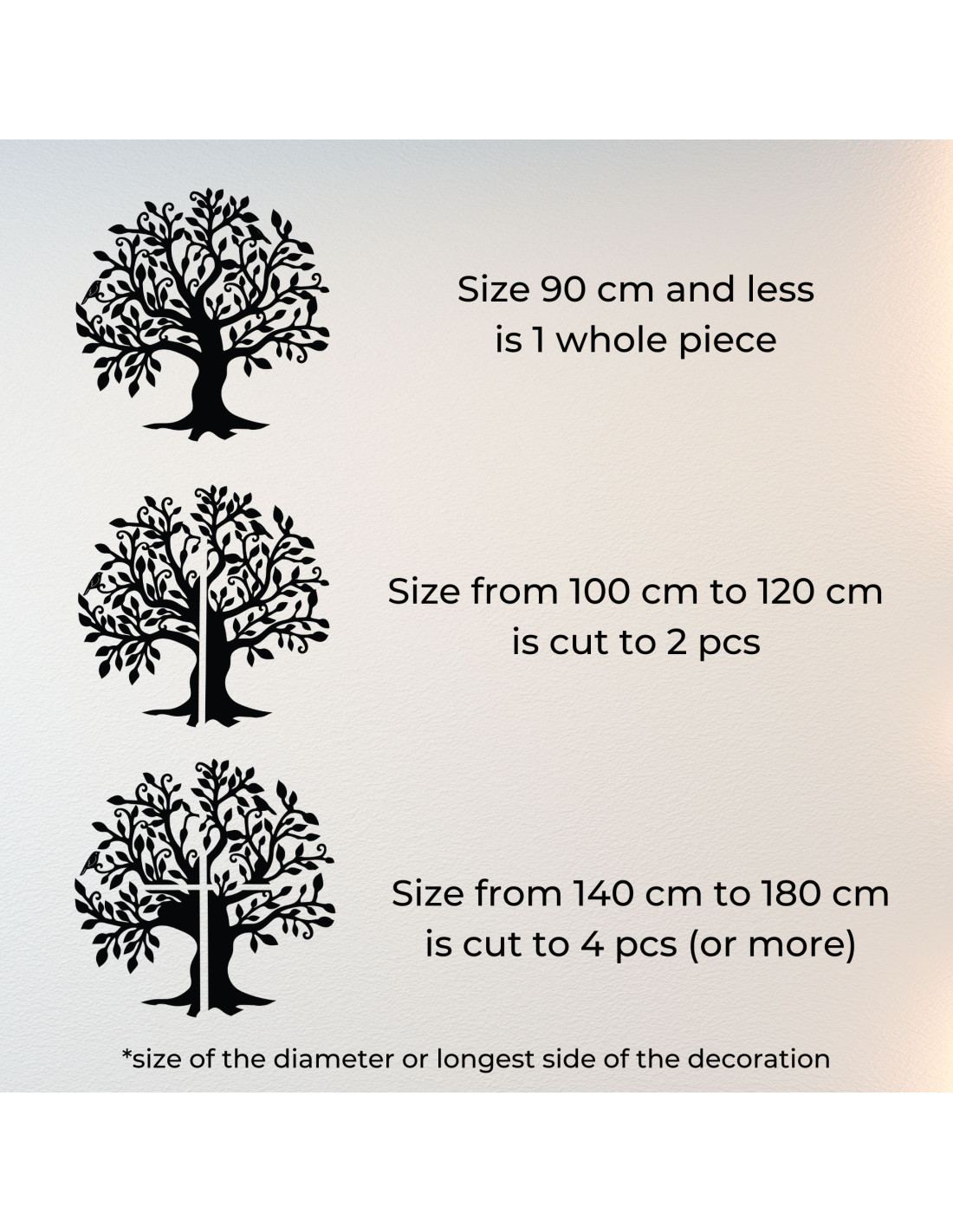 - 30 cm – 90 cm: the decoration is made as one piece