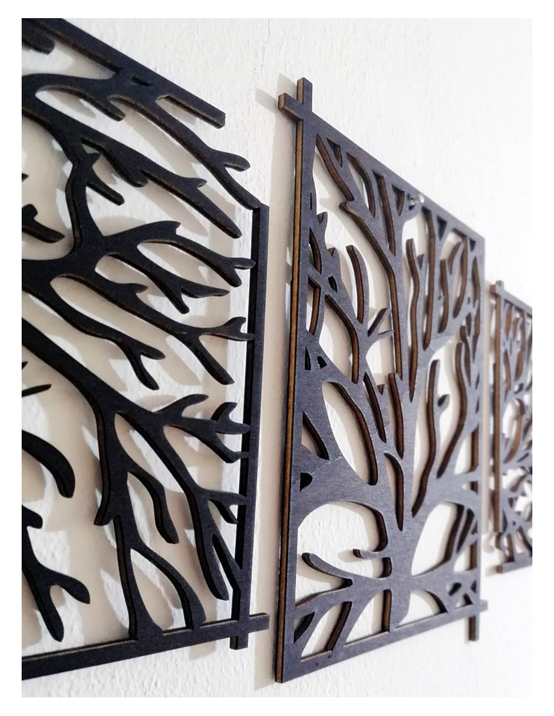 This decorative wall panel captures the beauty of trees in a modern and elegant design. Made from high-quality material with a black finish and natural accents, the panel creates a striking visual contrast that will refresh any space. The detailed pattern of branches and leaves gives the piece a unique and organic feel.