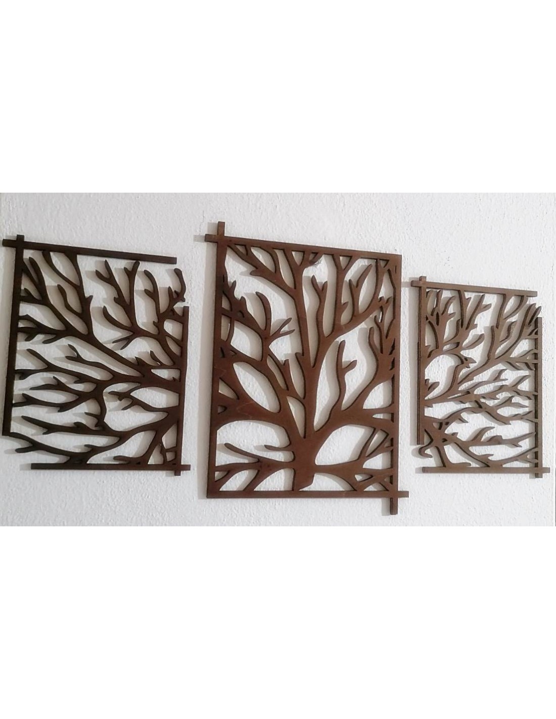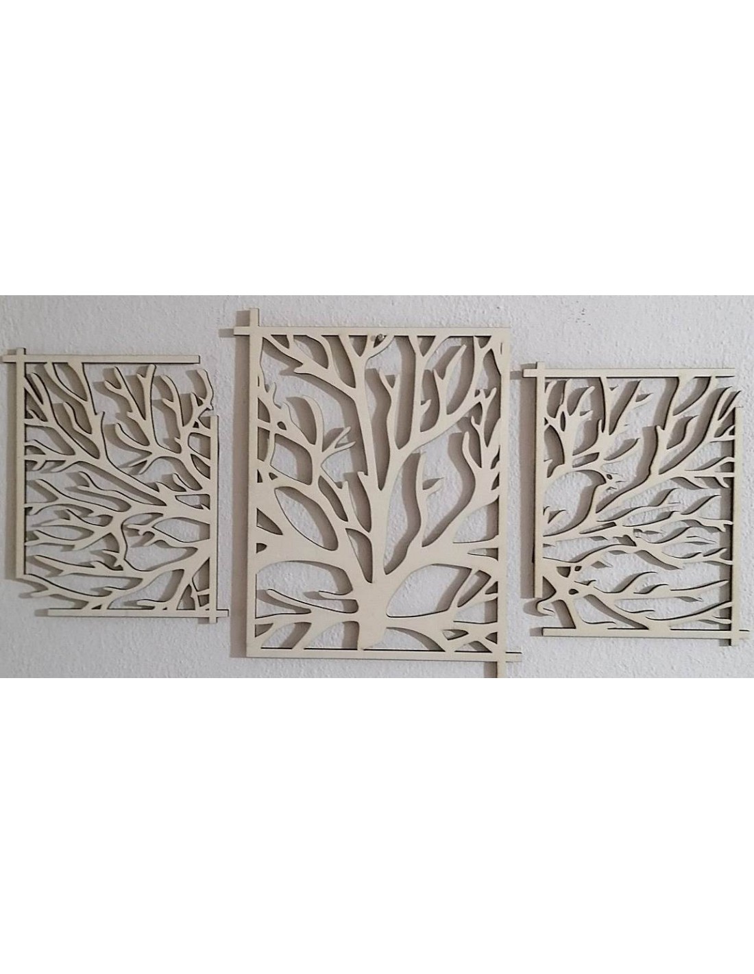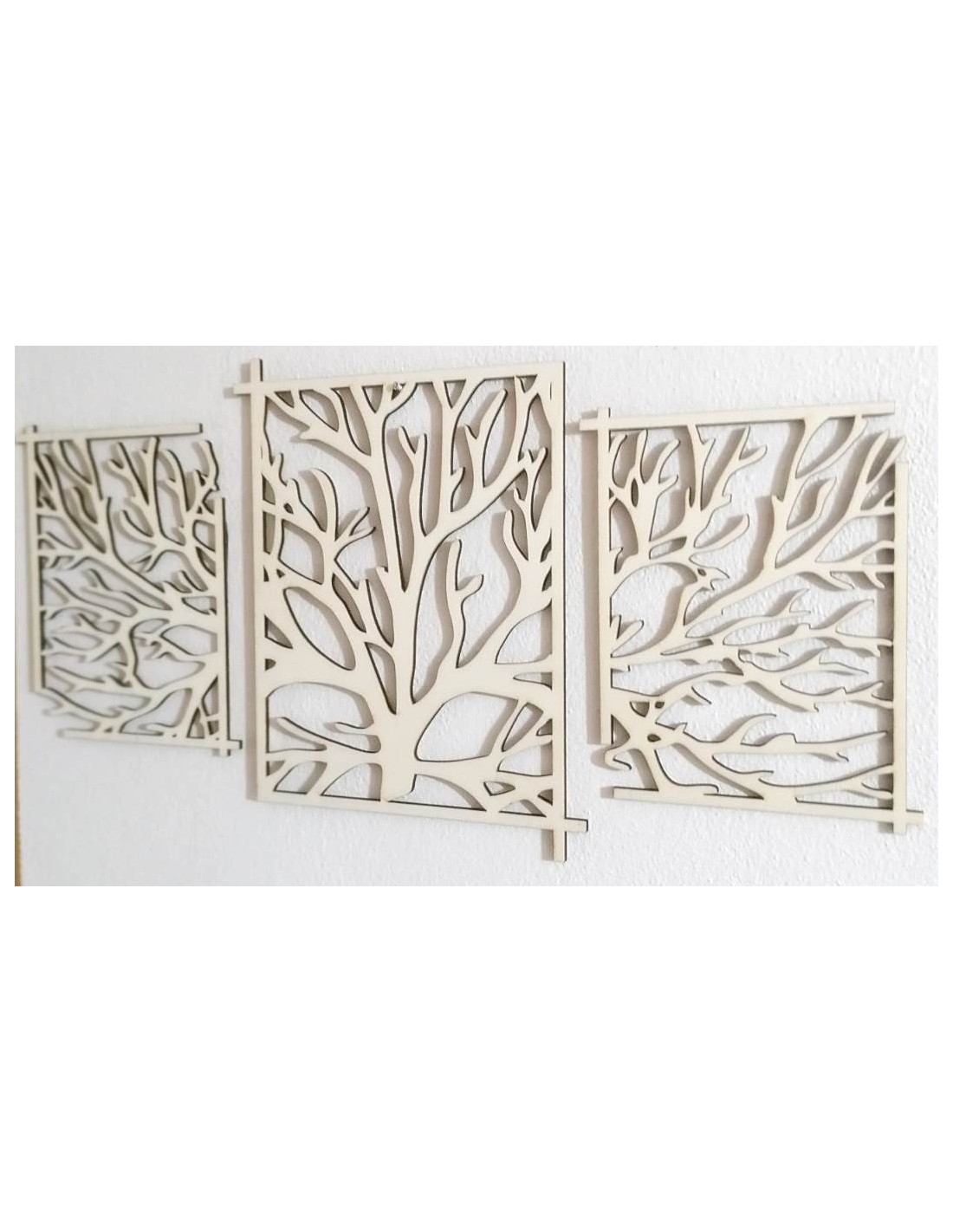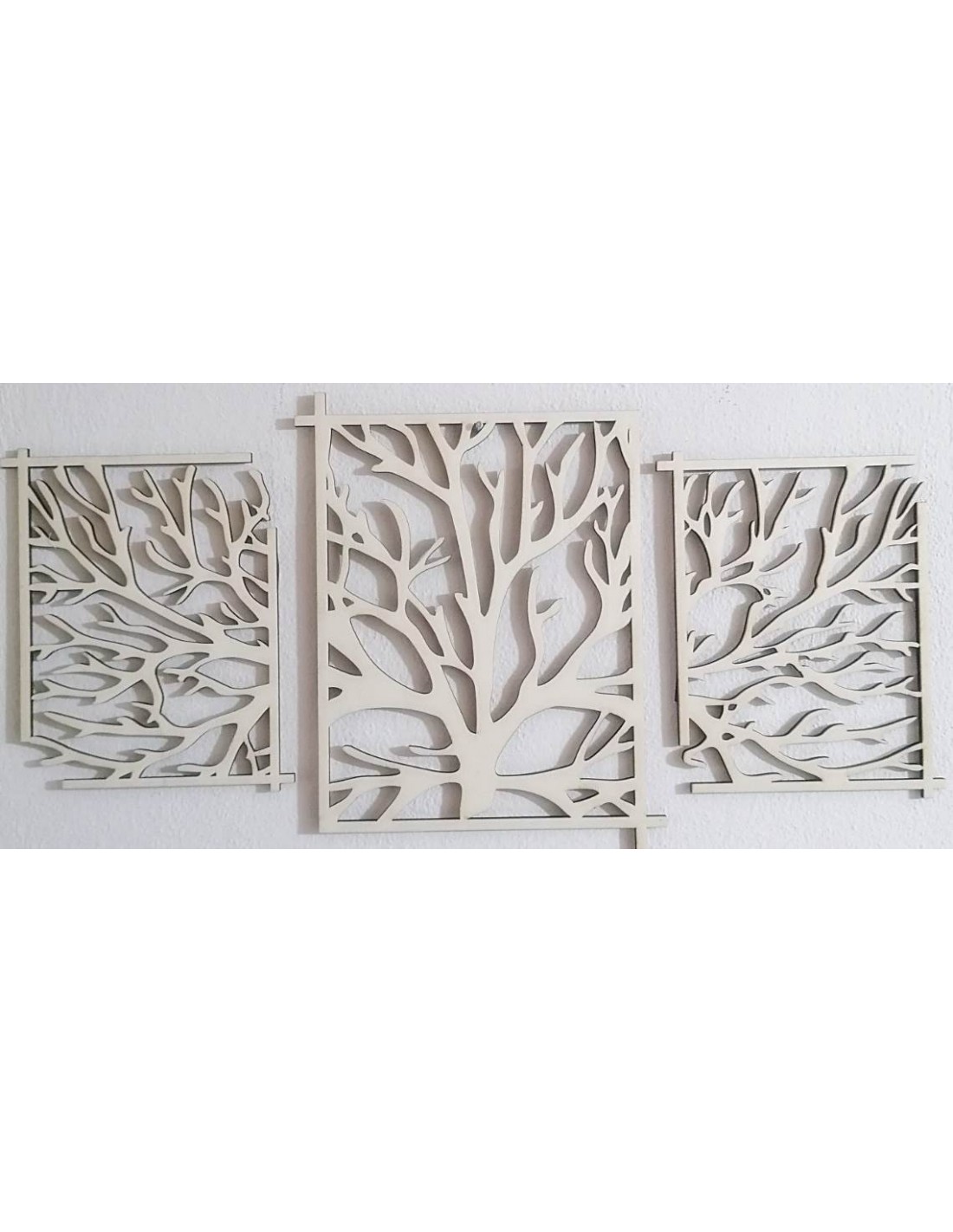 This image shows decorative wall panels with a tree design. Made of materials with contrasting black and natural tones, these panels bring a natural and modern look to the interior. Their unique pattern and detailed workmanship will give the space a special character, and are an ideal addition to living rooms, hallways, or other rooms. If you have any questions or need more information, feel free to ask!