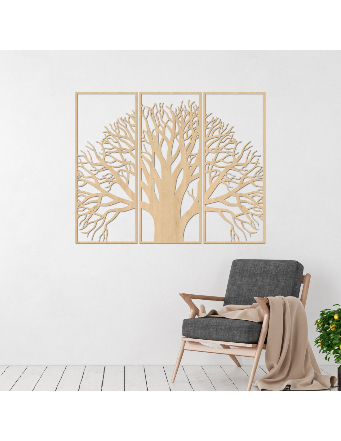This elegant wooden image is crafted with attention to detail, quality and aesthetics. It was created using precise laser technology , which reveals the fine structure and natural beauty of the wood. The motif of the tree of life symbolizes balance, growth and harmony - values that will transform any space into a place of peace and inspiration. Wooden Bough Tree Wall Decor: Set of 3 HDF Wood Art