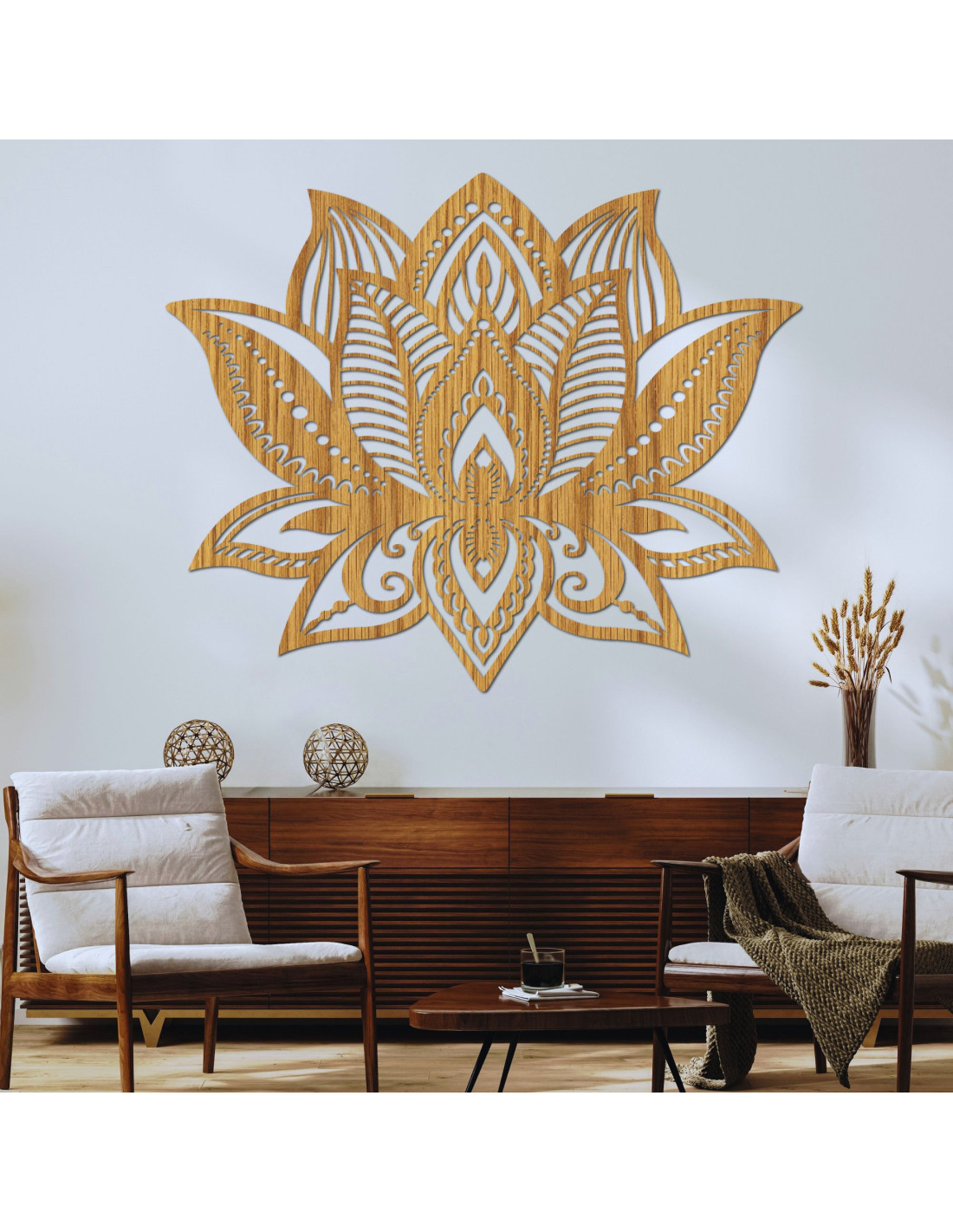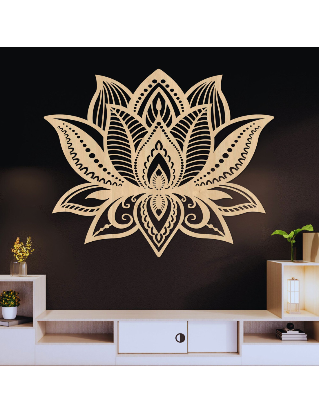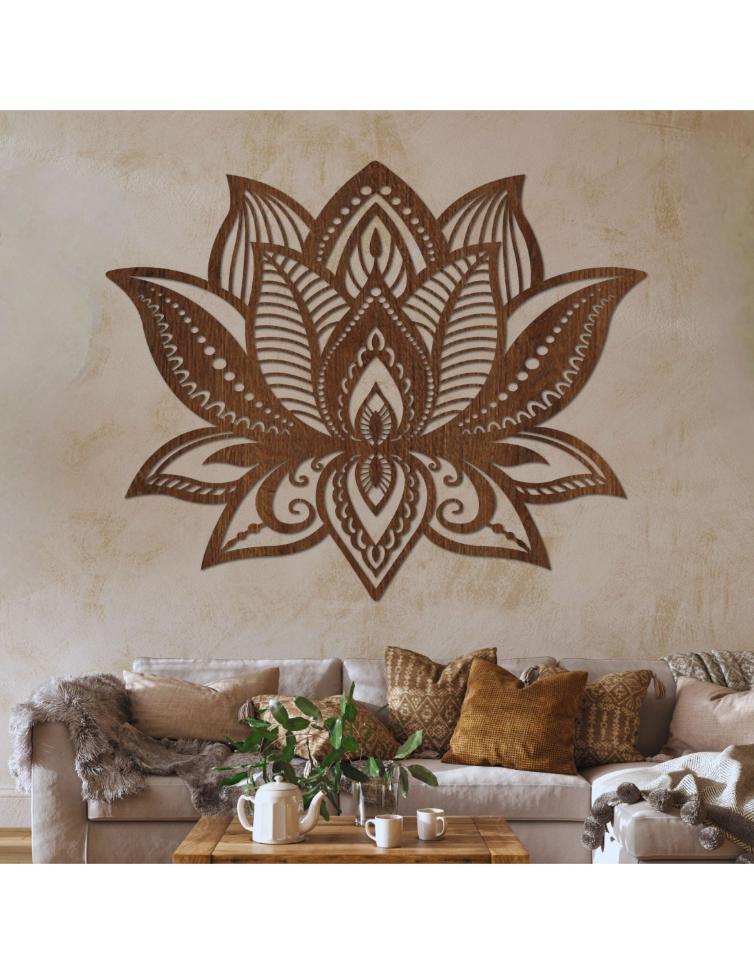 Lotus Flower Wood Wall Art: Spiritual Living Room Decor | LOTONIS