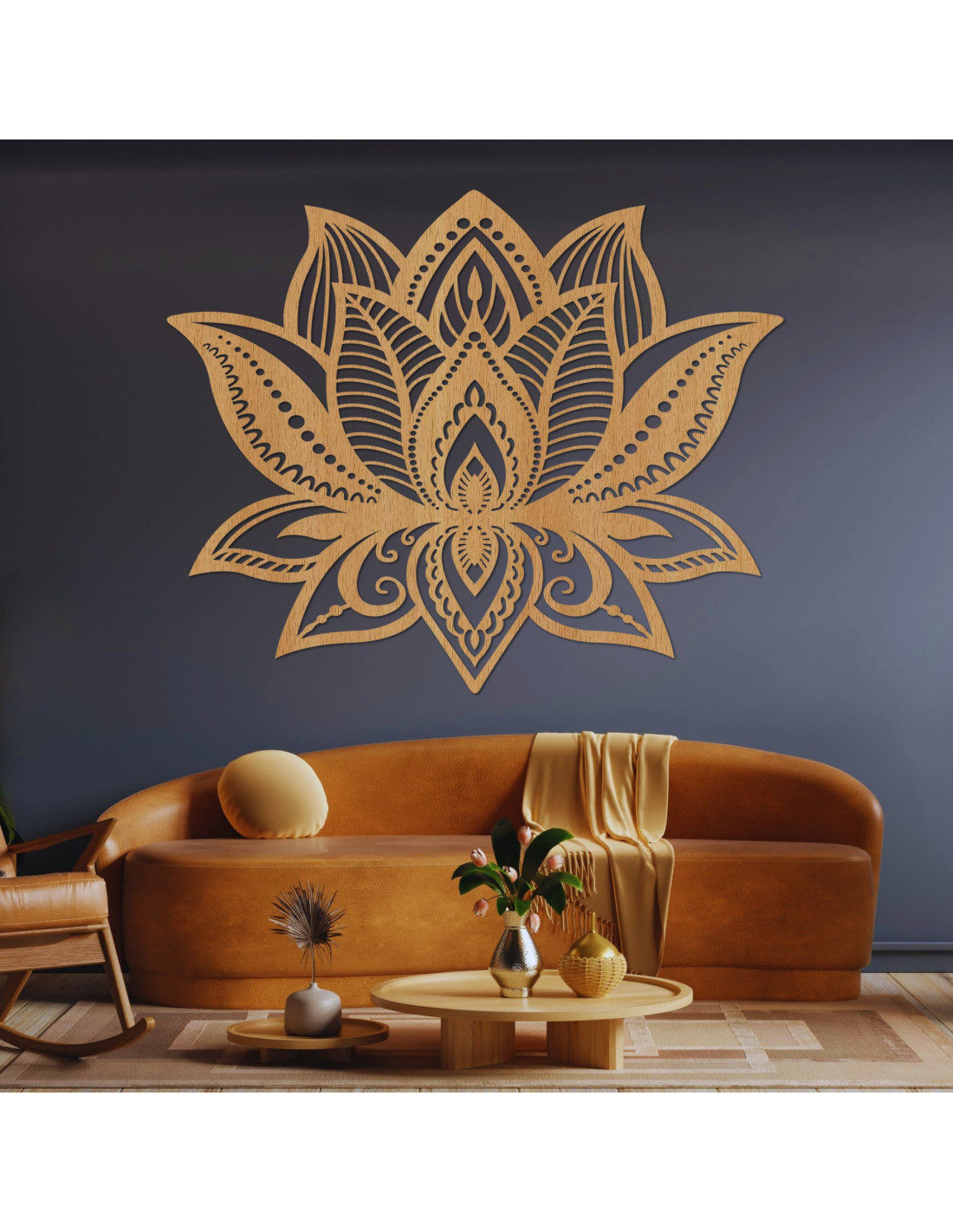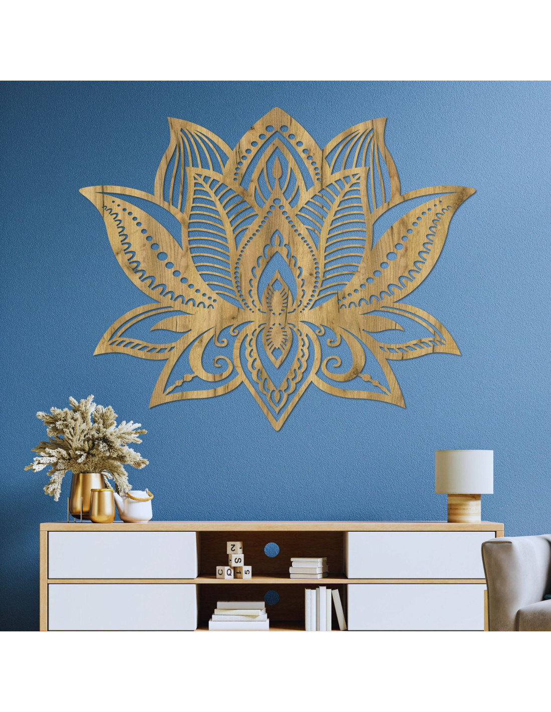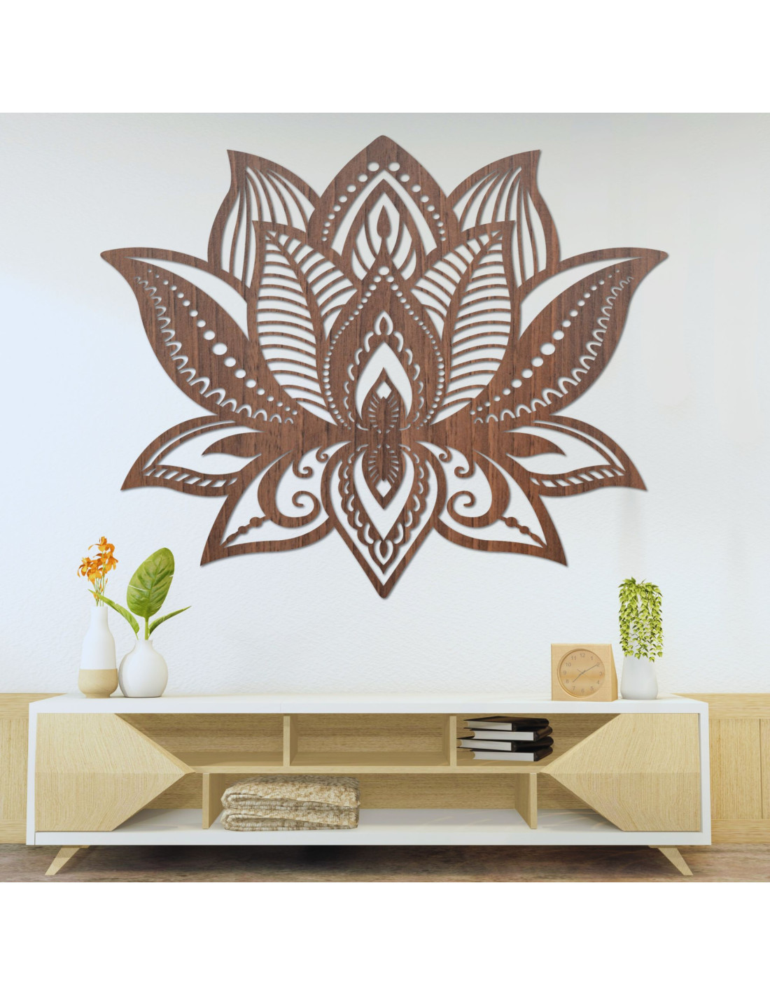 Lotus Flower Wood Wall Art: Spiritual Living Room Decor | LOTONIS