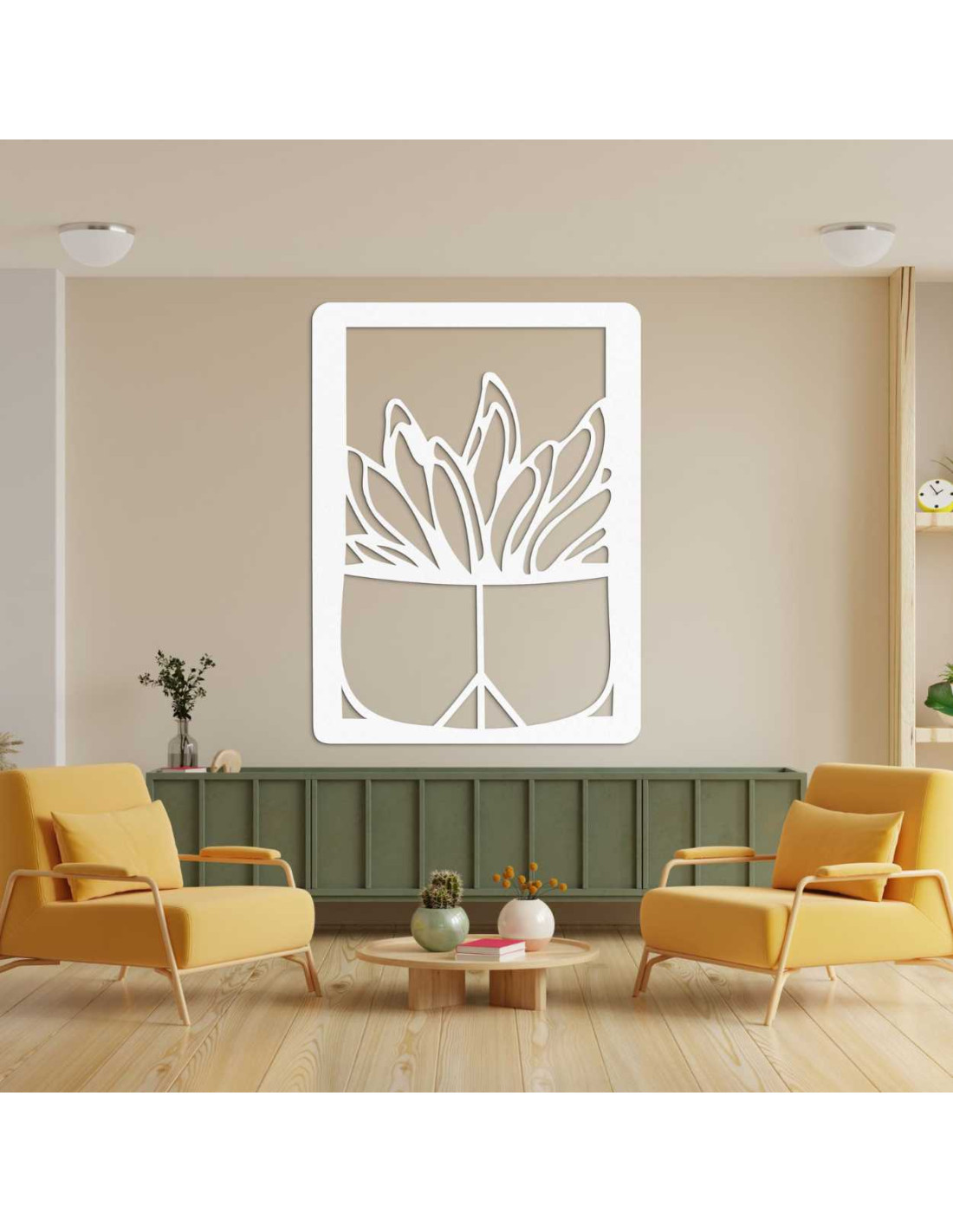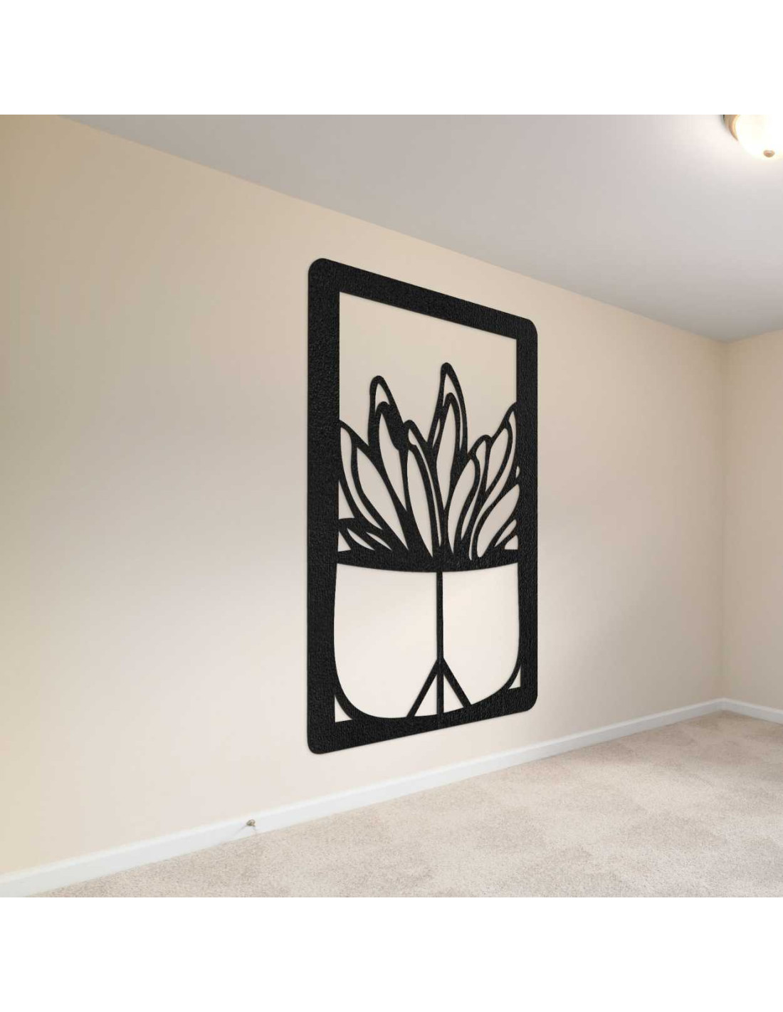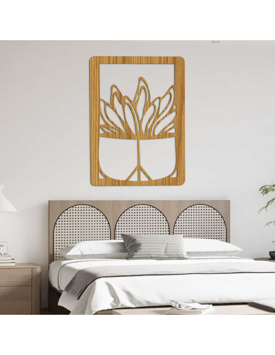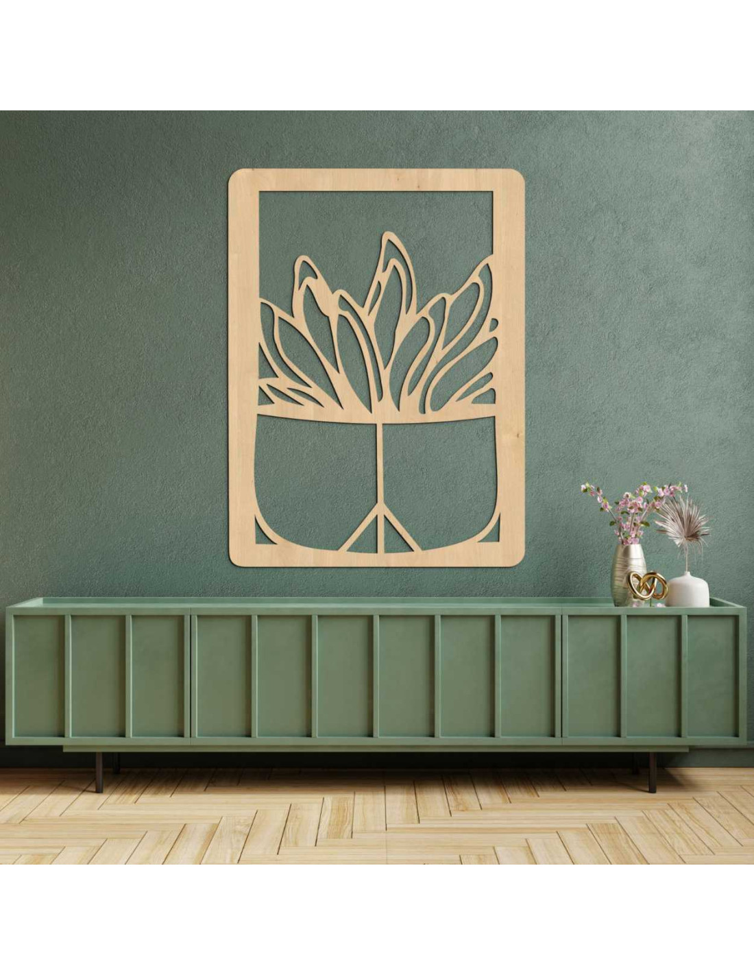 Wooden wall painting - Plant in a pot | Modern wood carving for the interior - GEERA