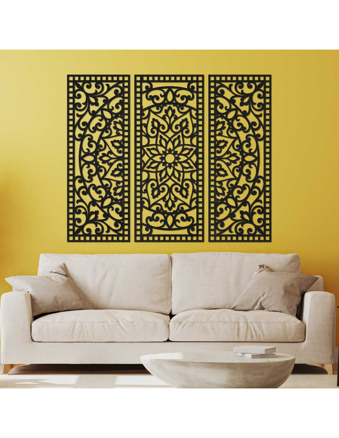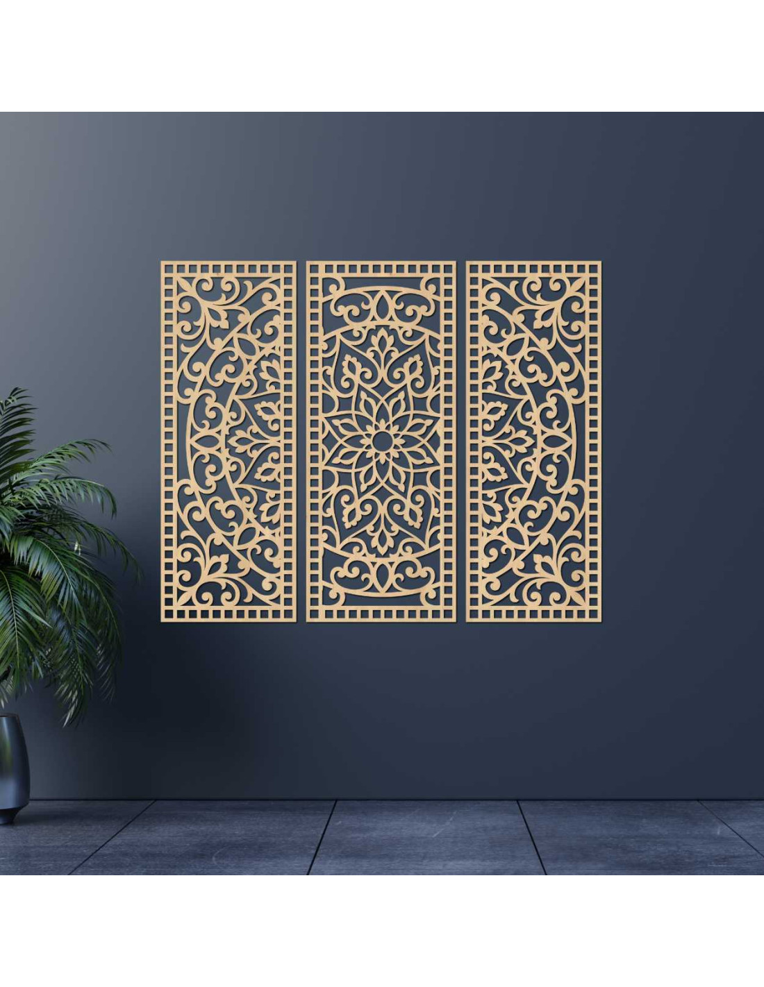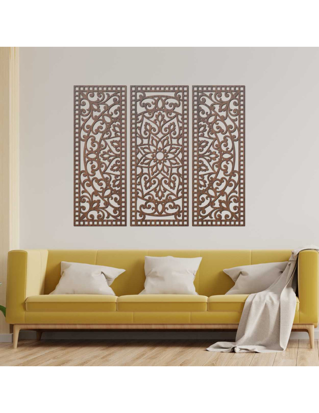 Floral Mandala Made of Wood - Boho 3-piece wall decoration represents a combination of traditional mandala patterns and modern precision workmanship.