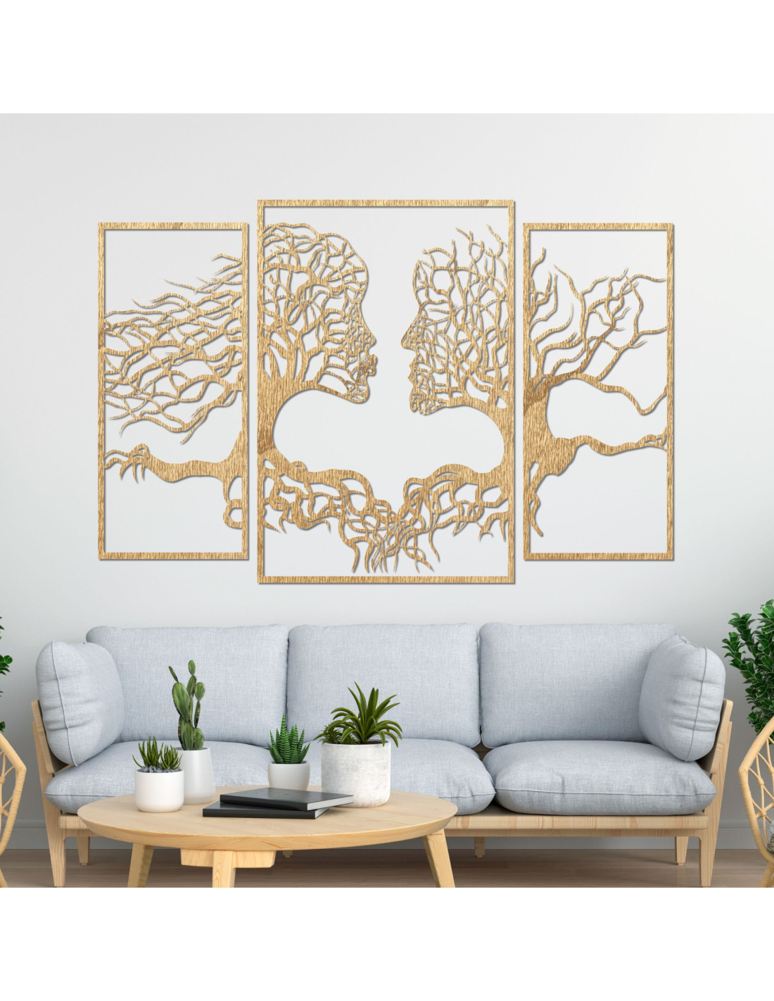 It depicts intertwined faces made of tree branches, expressing the connection and unity between people. With its strong contrast against the white background, it will become a real decoration of your interior. Its unique design is ideal for enriching a living room, office or art studio and is sure to catch the attention of every visitor.