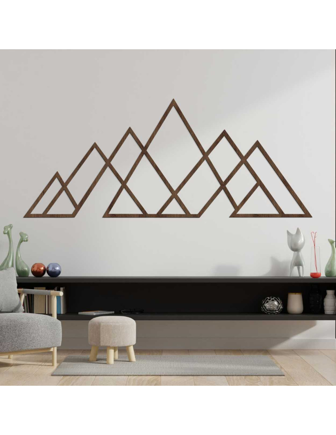 Modern wall decoration with a mountain motif in a minimalist geometric style .